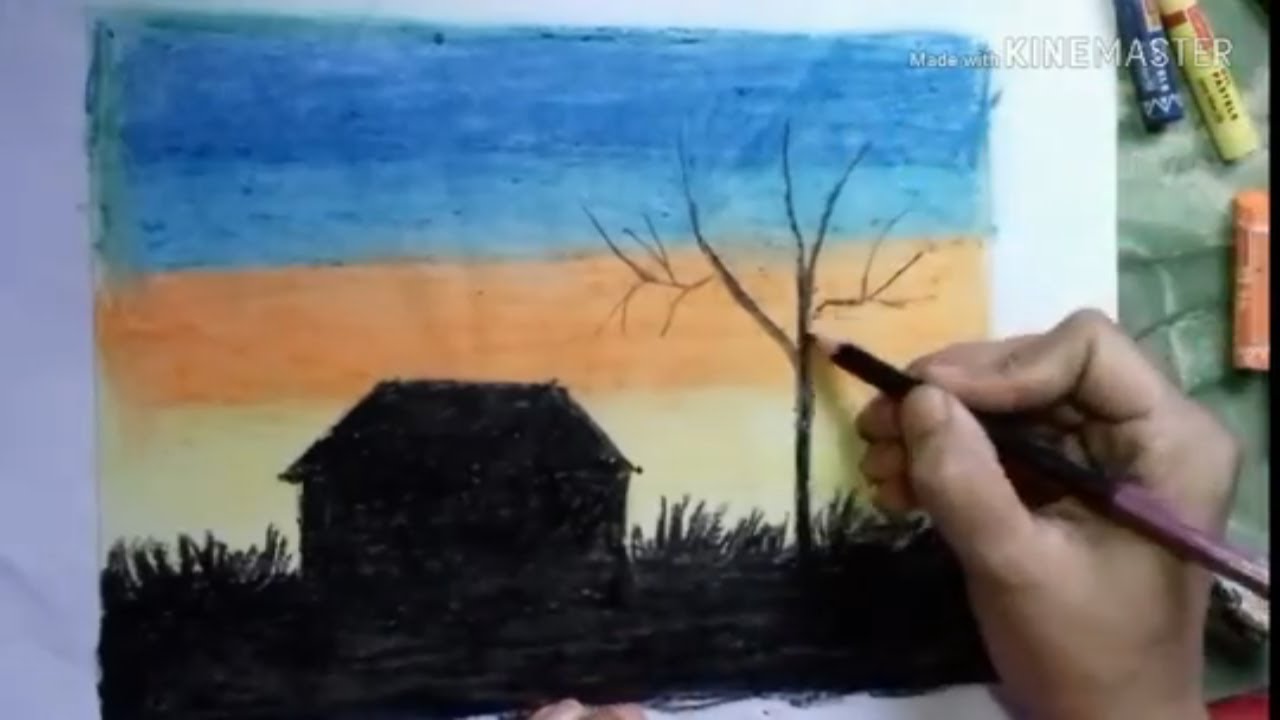 Drawing Of Evening Time A Sunset Scenery Oil Pastel Drawing Youtube